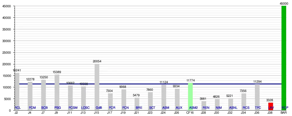 Sans le match de barrages qui a attiré 45 000spectateurs, la moyenne chute à 9 808