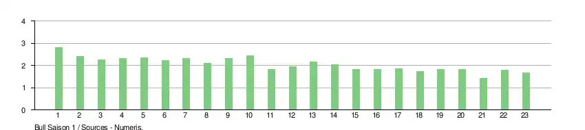 - Calcul fait en additionnant les données de chaque épisode et en divisant le tout par 23.