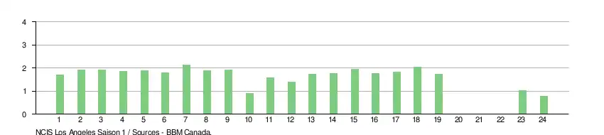- La moyenne de cette saison est d'environ 1,83 million de téléspectateurs[Note 3].