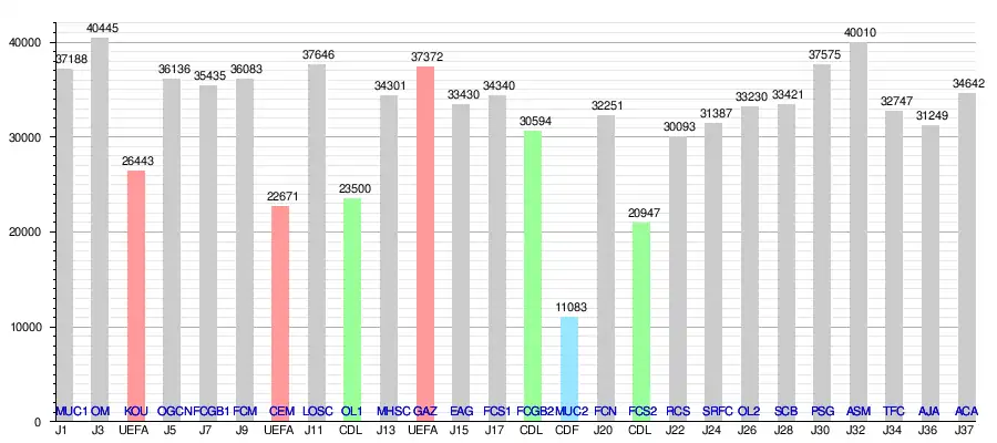 - « Affluences par journée, par club, taux de remplissage », sur lfp.fr (consulté le )