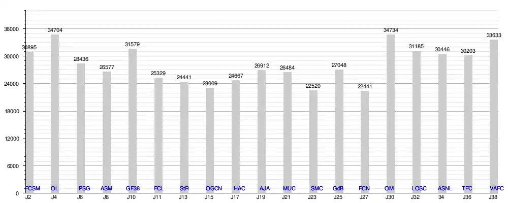Malgré une saison stressante et compliquée niveau comptable, le public a toujours bien présent à Geoffroy-Guichard. En témoigne l’assistance qui a dépassé à 8 reprises (sur 19) les 30 000 personnes au stade.