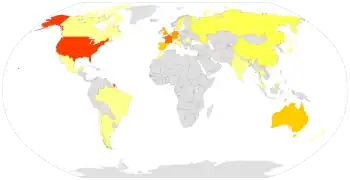 NB: Les Jeux olympiques d'été, organisés à part entière par l'ITF, ne sont pas pris en compte. - Un titre remporté par une paire du même pays ne compte qu'une fois.