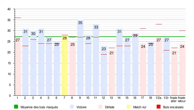 Total de 599 buts en 22 matchs (soit 27,2 buts/match)