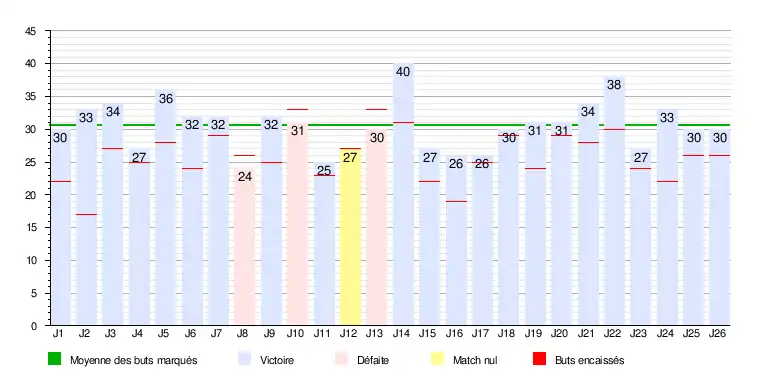 Ce graphique représente le nombre de buts marqués lors de chaque journée du championnat.