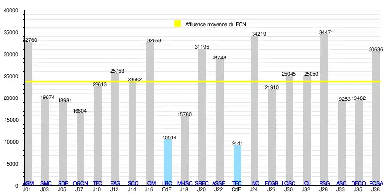 - de 498 174 spectateurs en 21 rencontres toutes compétitions confondues, soit une moyenne de 23 723/match.
