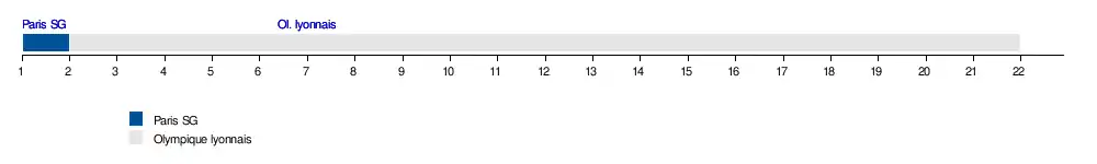 | 2 | OL | 6 - 0 | ASSE | 1er (0) |