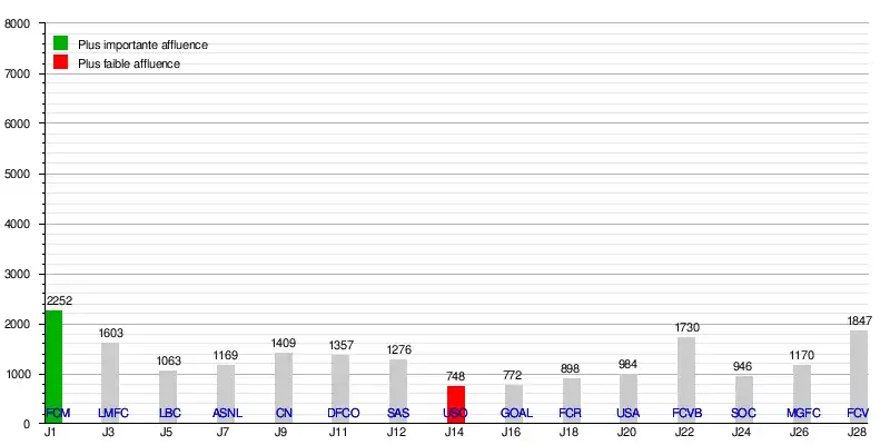 | 11/10/2023 | Journée 10 | Marignane GCB FC | Ext. | 1-1 | 4e | 257 | |