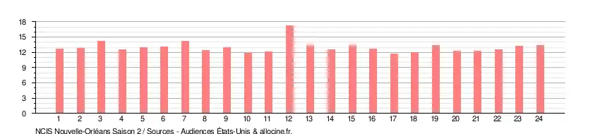 - Pour le calcul des épisodes 13x02 de NCIS et 2x12 de NCIS : Nouvelle-Orléans, les deux épisodes ont été calculés ensemble comme étant un seul épisode d'une durée de deux heures.