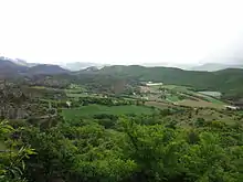 - la nappe de Digne au sud-est[5], au niveau du lobe de Valavoire[6] : il s'agit d'une nappe de charriage, c'est-à-dire d'une dalle épaisse de près de 5 000 m qui s'est déplacée vers le sud-ouest durant l'Oligocène et la fin de la formation des Alpes. Les lobes (ou écaille) correspondent à la bordure découpée à l'ouest de la nappe.
