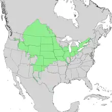 On le trouve dans les prairies du nord, souvent près des cours d'eau, accompagnant les peupliers de Virginie. Comme l'indiquent le nom scientifique et le nom commun, ses feuilles présentent des ressemblances avec celles du pêcher et de l'amandier (Latin, Amygdalus).