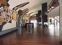 Le plafond « sphéroïdal aplati[19] » sous la coupole possède à l'intérieur une surface suspendue formée de corps en relief géométriques. Avec les portes qui se situent entre les décrochements des parois de côté, la grande salle donne sur un couloir et vers le foyer principal, qui ouvre l'accès à deux « foyers pour fumeurs ».