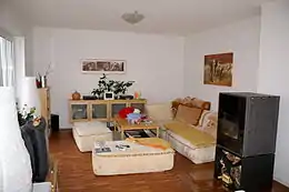 La salle de séjour, aussi appelée salon, est la pièce du logement dédiée aux divertissements de la famille (lire, regarder la télévision, écouter de la musique, etc.) et à la réception des invités. Il est alors meublé de sièges plutôt confortables (canapé, fauteuil,chaise à bascule-chair, pouf etc.), de table basse, table gigogne, meuble-bibliothèque, bar, ou éventuellement des instruments de musique volumineux (par exemple, un piano ou un orgue). Il est aussi équipé de matériel audio-vidéo (téléviseur, magnétoscope, lecteur de DVD, Chaine Hi-Fi, console de jeux vidéo, etc.).