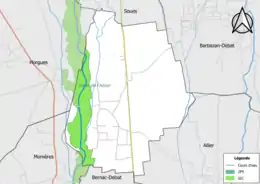 Le réseau Natura 2000 est un réseau écologique européen de sites naturels d'intérêt écologique élaboré à partir des directives habitats et oiseaux, constitué de zones spéciales de conservation (ZSC) et de zones de protection spéciale (ZPS)[Note 2]. Un site Natura 2000 a été défini sur la commune au titre de la directive habitats : la « vallée de l'Adour »[14], d'une superficie de 2 694 ha, un espace où les habitats terrestres et aquatiques abritent une flore et une faune remarquable et diversifiée, avec la présence de la Loutre et de la Cistude d'Europe[15].