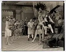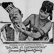 Heinie Conklin (au milieu avec l'éventail) dans le rôle d'un esclave romain dans Salome vs. Shenandoah. Phyllis Haver joue la danseuse Salomé, tandis que Charles Murray, incarne le Roi Hérode.