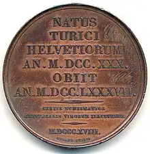 Le monument est érigé en 1792 sur la promenade du Platzspitz. Doret l'exécute en marbre noir de Saint-Triphon, avec les bas-reliefs blancs de Trippel en marbre de Carrare[3].