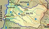 Salto est une grande ville d'Uruguay, siège d'une municipalité[1] et la capitale du département de Salto. Située au nord-ouest du pays, à 498 km de la capitale Montevideo, cette cité historique fondée en 1756 est une ville fluviale établie sur la rive gauche du río Uruguay. Son port encore actif y occupe un site de méandre face à la ville argentine de Concordia que l'histoire et la culture unissent et dont les relations interurbaines sont facilitées par la mise en service du pont international établi sur le barrage de Salto Grande.