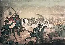 Entre 1839 et 1851, l'Uruguay connait une guerre civile nommée « Grande Guerre » durant laquelle les Colorados, partisans de Fructuoso Rivera, et les Blancos, partisans de Manuel Oribe, appuyés par l'Argentine, s'affrontent, avec l'appui de volontaires étrangers dont la Ligue italienne commandée par Giuseppe Garibaldi. Salto n'échappe pas à cette période turbulente de l'histoire uruguayenne et se retrouve dans l'opposition. En octobre 1845, environ 1 000 hommes des troupes de Garibaldi formées d'Italiens et d'Uruguayens franchissent le fleuve Uruguay et s'emparent de Gualeguaychú en Argentine avant de prendre Salto et y demeurent plusieurs mois[20]. Le 8 février 1846, Garibaldi bat l'armée de Gomez, en tuant plusieurs centaines d'hommes à San Antonio Chico, près de Salto. Après sa victoire, Garibaldi est reçu à Montevideo en tant que Général en février 1846 après que la nouvelle de sa victoire est connue dans la capitale.