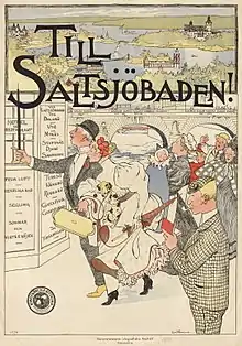 L'idée est d'investir dans une luxueuse station balnéaire maritime, celle-ci et la ligne ferroviaire se valorisant l'une l'autre. Dès 1893, le Grand Hôtel ouvre ses portes, et la liaison ferroviaire est inaugurée. Le site, qui s'appelait originellement Rösunda, est vite rebaptisé Saltsjöbaden, soit « Mer salée les bains ». Les eaux bénéficient en effet d'une salinité relativement élevée eu égard à la situation au sein de l'archipel de Stockholm.