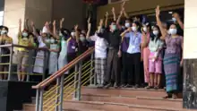 - « Contestation. Birmanie : le salut à trois doigts de “Hunger Games” comme geste de ralliement », sur Courrier International, (consulté le ).