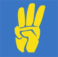 Le salut à trois doigts apparaît comme une référence au tryzoub présent sur les Armoiries de l'Ukraine . Ce salut serait apparu comme signe lié au ralliement pour l'indépendance de l'Ukraine à la fin des années 1980[18],[19]. On le trouve également employé par le parti nationaliste Svoboda (parti ukrainien)[19] dont il devient le symbole à partir de 2004.