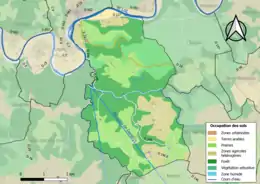 L'occupation des sols de la commune, telle qu'elle ressort de la base de données européenne d’occupation biophysique des sols Corine Land Cover (CLC), est marquée par l'importance des forêts et milieux semi-naturels (53,7 % en 2018), une proportion sensiblement équivalente à celle de 1990 (55 %). La répartition détaillée en 2018 est la suivante : forêts (41,3 %), prairies (27 %), zones agricoles hétérogènes (15,4 %), milieux à végétation arbustive et/ou herbacée (12,4 %), terres arables (1,6 %), zones urbanisées (1,2 %), eaux continentales (1,2 %)[16].