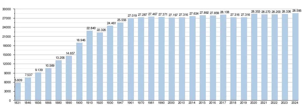 - Source: DGS , de 1831 à 1981=recensements population; à partir de 1990 = nombre d'habitants chaque 1 janvier