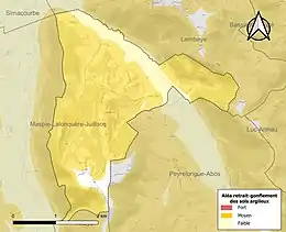 Le retrait-gonflement des sols argileux est susceptible d'engendrer des dommages importants aux bâtiments en cas d’alternance de périodes de sécheresse et de pluie[32]. 86,5 % de la superficie communale est en aléa moyen ou fort (59 % au niveau départemental et 48,5 % au niveau national)[Carte 5]. Depuis le , en application de la loi ELAN, différentes contraintes s'imposent aux vendeurs, maîtres d'ouvrages ou constructeurs de biens situés dans une zone classée en aléa moyen ou fort[Note 7],[33].
