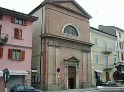 - Église de San Benedetto Martire - Le premier établissement remonte au XIe siècle où l'ancienne église paroissiale de San Benedetto se trouvait sur la tombe de San Benedetto Martire autour de laquelle, après 1140, les murs ont été construits. Il reste peu de choses de l'ancien sépulcre et de l'ancien bâtiment car l'église a été modifiée et agrandie à la fin du XVIIIe siècle selon un projet de l'architecte Pietro Augustoni. Entièrement en brique avec une façade à cadres et pilastres et un tympan en pierre, dans l'église sont conservés, outre des trouvailles, des épigraphes et des pierres tombales, plusieurs autres ouvrages : un retable de 1707 du peintre Ubaldo Ricci de Fermo relatif à la Cène, un retable anonyme de la Madonna del Rosario du XVIe siècle et un autre de la Madonna del Carmelo, également anonyme, du XVIIIe siècle ; également le simulacre de l'Immaculée Conception réalisé en 1856, un Christ mort de la seconde moitié du XIXe siècle et surtout l'autel de San Benedetto Martire avec des reliques du saint[22].