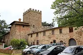 - Le Château de Gabbiano. Selon des sources du XIe siècle, il fut construit à l'origine autour d'une tour carrée qui servait de rempart sur la route de Greve in Chianti, l'une des routes les plus importantes entre Florence et Sienne. Il fut agrandi au XIIIe siècle par la famille Bardi de Florence. Les tours arrondies, révélant une influence française, furent ajoutées en 1505.