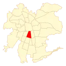 Position de San Miguel (en rouge) au sein de l'agglomération de Santiago.
