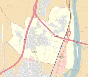 Le territoire de la commune est partagée en quatre. La partie ouest, séparée du territoire par l'autoroute A6 comporte le hameau de la Grisière et le bois communal. Au centre, le bourg du village concentre la majorité des habitants. Au nord-est, des habitations sont séparées du bourg par l'autoroute A40. Enfin, la zone d'activités commerciale des Platières forme le sud-est de la commune.