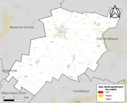 Le retrait-gonflement des sols argileux est susceptible d'engendrer des dommages importants aux bâtiments en cas d’alternance de périodes de sécheresse et de pluie. 0 % de la superficie communale est en aléa moyen ou fort (52,8 % au niveau départemental et 48,5 % au niveau national). Sur les 383 bâtiments dénombrés sur la commune en 2019, 0 sont en aléa moyen ou fort, soit 0 %, à comparer aux 70 % au niveau départemental et 54 % au niveau national. Une cartographie de l'exposition du territoire national au retrait gonflement des sols argileux est disponible sur le site du BRGM[19],[Carte 2].