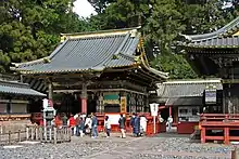 Porte dorée du sanctuaire shinto Ueno Tōshō-gū, à Tokyo, dans le parc d'Ueno ().
