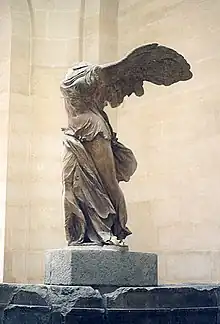 La guerre navale entre Lagides et Antigonides se poursuit avec intermittence durant toute la seconde moitié du IIIe siècle av. J.-C. jusqu'à Philippe V de Macédoine, le dernier roi antigonide à tenter d'établir une thalassocratie macédonienne, finalement vaincu par l'alliance maritime de Rhodes et de Pergame : une colonne monumentale lui est dédiée par les Macédoniens devant la grande stoa de la terrasse supérieure vers 200. C'est peut-être à l'occasion d'un de ces épisodes qu'est construite la fontaine monumentale contenant la fameuse statue de la Victoire sur une proue de navire (cf. photographie et plan, no 9) : il pourrait s'agir d'une dédicace rhodienne plutôt que macédonienne, si on en croit l'analyse du marbre utilisé pour la proue du navire et le type de ce dernier, tous deux provenant de Rhodes. Mais d’autres interprétations ont été proposées : selon l’helléniste Jean Richer, ce navire décrirait la Constellation du Navire Argo ; or, la proue de navire et la statue de la Victoire ont été précisément placées en biais dans la fontaine (plan, no 9), de telle façon que la Victoire regardait dans la direction du nord, orientée exactement vers l’angle nord-est de l’Anaktoron, déterminant ainsi l’angle le plus sacré du bâtiment où l’on donnait l’initiation : allusion au pôle, à la porte des dieux, identifiable au mont Haemus, et à une victoire toute spirituelle dans un culte accordant à l’astrolâtrie une place privilégiée[27].