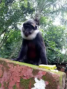 - des singes à ventre rouge (Cercopithecus erythrogaster ) habitués à la présence humaine. C’est l'espèce de primates la plus menacée du Bénin[4];