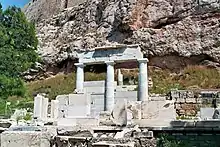 - Travlos p.91, Philostratos mentionne cette grotte sanctuaire comme le Pythion (Vita Sophistarium 2, 1, 5)