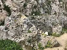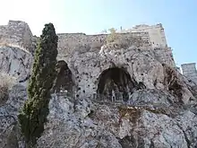 La grotte du milieu, également appelée grotte C dans la littérature archéologique, est datée du Ve siècle et attribuée à Zeus Olympios ou Zeus Kéraunios[5], d'après les interprétations de Thucydide (2, 15) et de Strabon (9, 404).