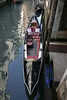 - Sàndolo da barcariol : type de sàndolo qui, tel la gondole, est utilisé à Venise exclusivement au transport de personnes. Peint en noir, équipé de parécio (petits fauteuils), un divan central, les chevaux dorés sur les côtés et un ferro en forme une boucle sur la proue. Les mesures moyennes sont : longueur 7,60 m, largeur 1,47 m, profondeur 39,1 cm.