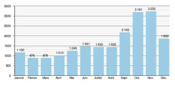 À Ouesso, le débit annuel moyen ou module observé sur cette période a été de 1 662 m3/s pour une surface prise en compte de 158 350 km2, soit plus de 70 % du bassin versant de la rivière.