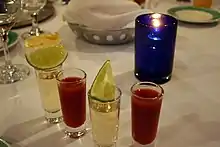 Verres de tequila accompagnés de Sangrita