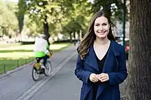 Sanna Marin (/ˈsɑnːɑ ˈmɑriːn/[alpha 1][1]), née le à Helsinki, est une femme d’État finlandaise, présidente du Parti social-démocrate de Finlande (SDP) et Première ministre du au .
