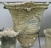 La plus grande quantité de poteries découvertes au Japon se trouve sur ce site, correspondant en tout à 40 000 vases. Certaines ont été retrouvées dans des amoncellements (interprétés comme des déchèteries), d'autres dans des tombes. Les vases sont relativement allongés, de forme conique. Ce style est nommé ento. Elles sont décorées par des motifs en creux, formés par l'application de cordes sur les poteries avant cuisson. Ces formes particulières, appelées jōmon, ont donné le nom de cette civilisation : « jō » signifie « corde » et « mon », « motif ». L'ouverture large est plus ou moins travaillée[19].