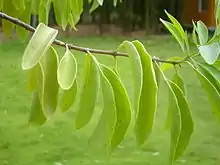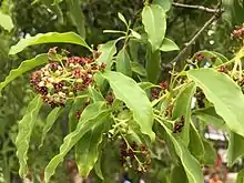 L'écorce est tendue, brun foncé ou rougeâtre et pouvant paraître presque noire. Elle est lisse chez les sujets jeunes mais devient rugueuse chez les sujets plus âgés, avec de profondes crevasses verticales laissant apparaître l'intérieur rouge[3]. Le cœur est de couleur vert pâle ou blanc comme son nom commun l'indique. Les feuilles sont minces, opposées, et de forme ovée à lancéolée. La face supérieure est glabre et d'un vert brillant, et la face inférieure verdâtre. L'arbre produit des fruits au bout de trois ans, avec des graines viables à partir de cinq ans. Les semences sont répandues par les oiseaux.