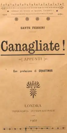 - (it) Sante Ferrini, Canagliate !, Londres, Tipografia internazionale, , 42 p.