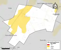 Le retrait-gonflement des sols argileux est susceptible d'engendrer des dommages importants aux bâtiments en cas d’alternance de périodes de sécheresse et de pluie. 27,1 % de la superficie communale est en aléa moyen ou fort (52,8 % au niveau départemental et 48,5 % au niveau national). Sur les 136 bâtiments dénombrés sur la commune en 2019, 81 sont en aléa moyen ou fort, soit 60 %, à comparer aux 70 % au niveau départemental et 54 % au niveau national. Une cartographie de l'exposition du territoire national au retrait gonflement des sols argileux est disponible sur le site du BRGM[18],[Carte 2].