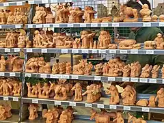 La fabrication des santons s'est diversifiée. « On en fabrique des grands de plus de 10 centimètres dont les bras sont collés après la cuisson et d'autres en fil de fer habillés de tissus dont seuls les mains et la tête sont en argile. La fabrication des santons qui sont habillés étaient à l'origine confiés à des familles qui confectionnaient leurs vêtements. »[8] la taille va de quelques centimétres pour les santons puces jusqu'aux grands santons d'église qui mesurent de 25 à 80 cm