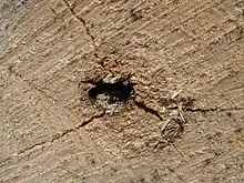Trou percé dans le tronc d'un peuplier faux-tremble abattu.