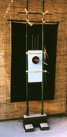 L’utilisation de ce « viseur » impliquerait simultanément, tout autant, les assises des pieds sur le sol, l’assise du souffle dans le ventre (hara), les dynamiques de la respiration que la perception visuelle et l’écoute. La mise en relation avec le centre de la cible étant le résultat d’une Gestalt avec le propre centrage du pratiquant[5].