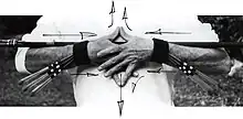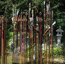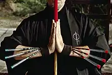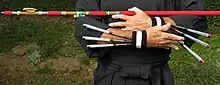 Les flèches (voiles) sont placées aux deux poignets, glissées sous des "serre-poignets" en tissu élastique du type de ceux utilisés pour le tennis, facilitant ainsi les manipulations de saisies des flèches et d’insertion dans la sarbacane durant le kata.
