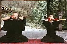 L’essence du protocole consiste à éclairer de l’attention la plus fine, l’exact instant de la naissance du Kiaï ! et la résonance de son feed-back dans la totale immobilité silencieuse de l’instant qui suit.